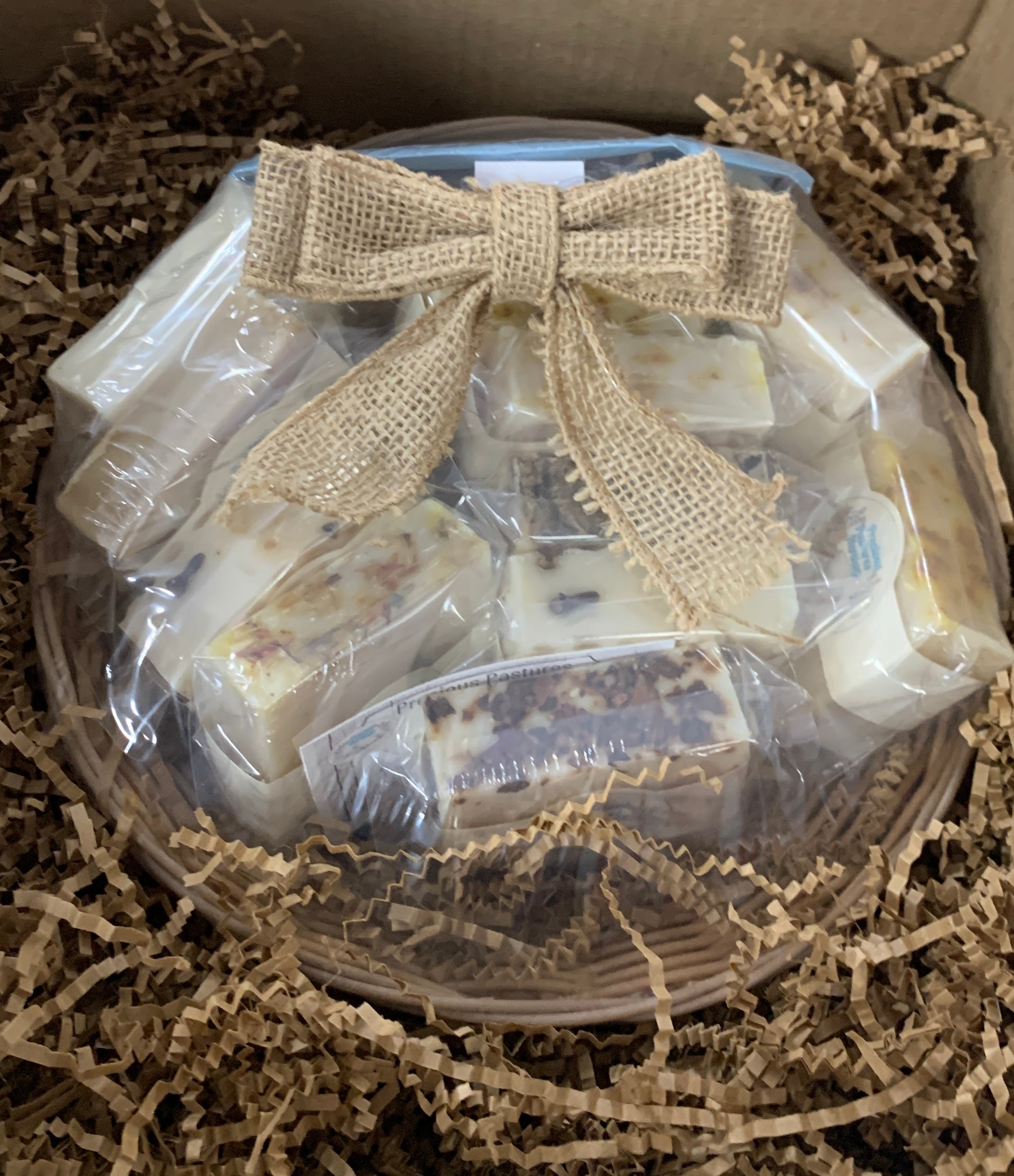 Comes with a full basket, containing 12 bars of soap, selected at random or by request.